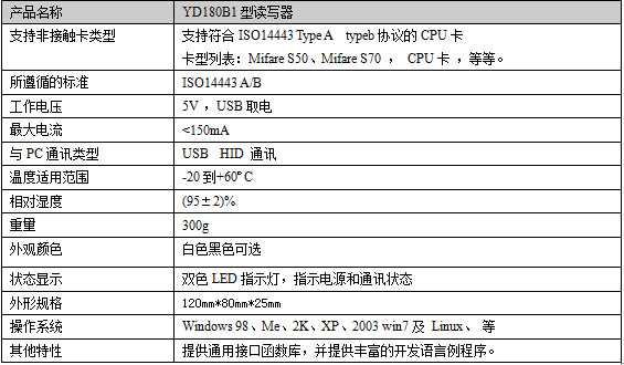 YD180B1型IC卡讀寫(xiě)器是開(kāi)發(fā)非接觸IC卡相關(guān)產(chǎn)品及系統(tǒng)集成必備的前端處理設(shè)備,其豐富、完善的接口函數(shù),可方便地應(yīng)用于銀行,工商、電信、郵政、稅務(wù)、保險(xiǎn)、醫(yī)療、會(huì)議簽到、網(wǎng)吧管理、加油站、停車(chē)場(chǎng)等各種收費(fèi)、儲(chǔ)值、查詢(xún)等智能卡管理應(yīng)用系統(tǒng)中。